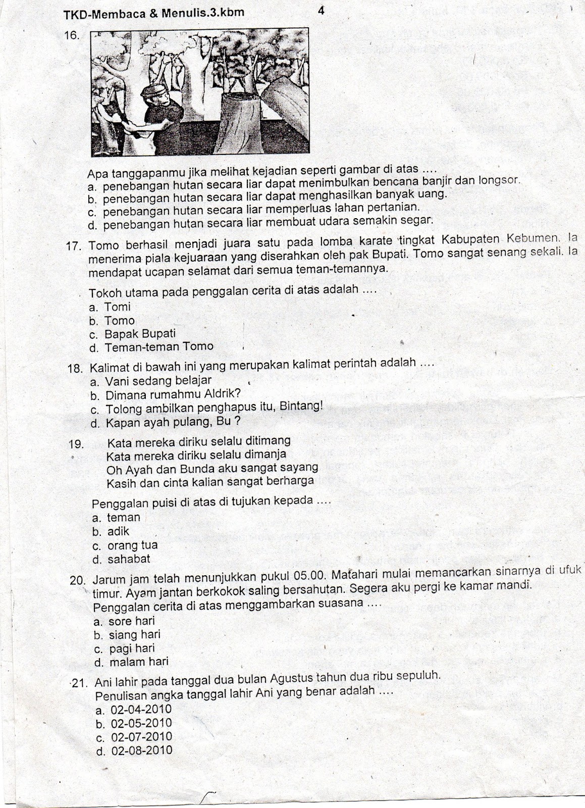 Memperoleh Soal Latihan TKD Kelas 3 SD Tahun 2015