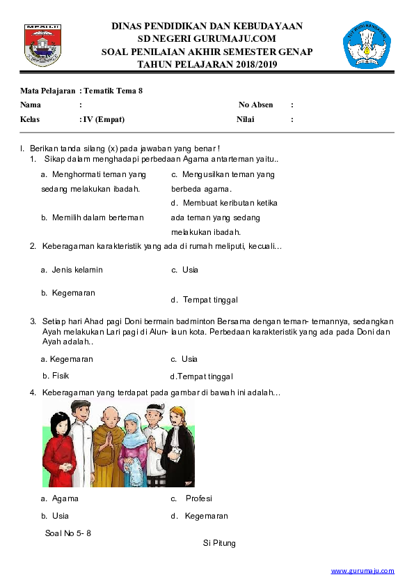 Jenis-jenis Soal PAA Tema 8 Kelas 1