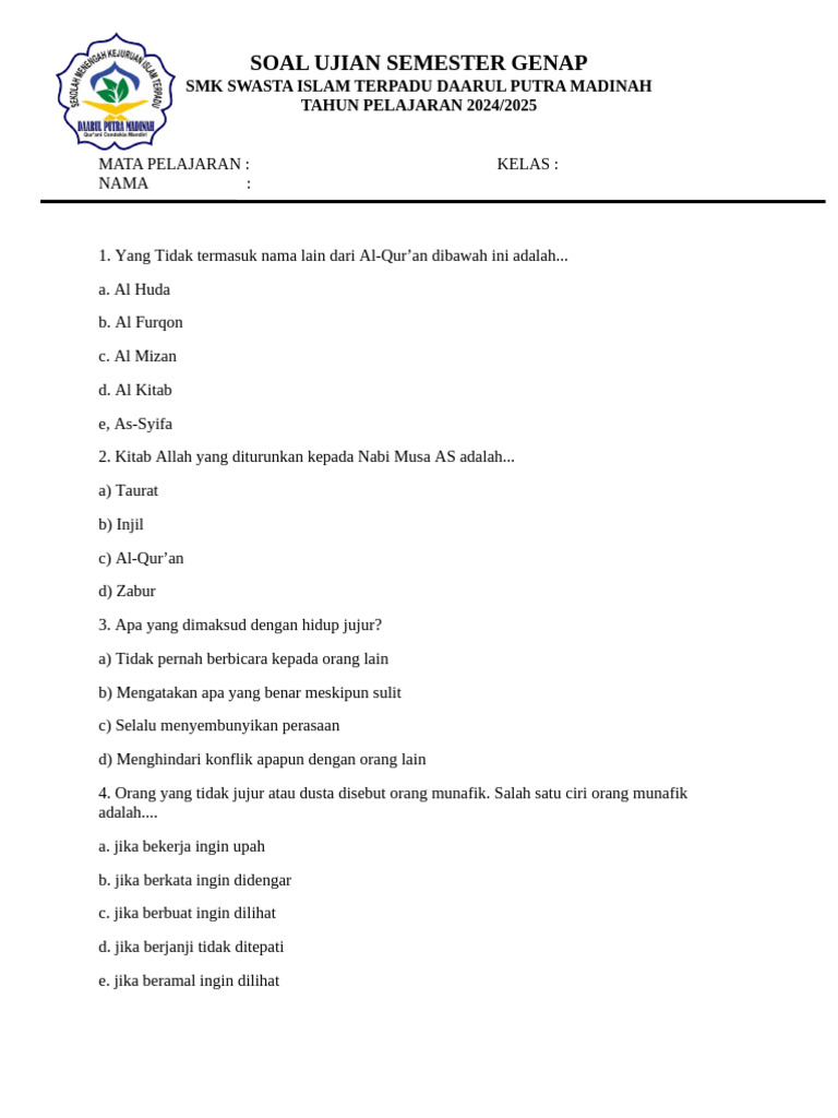 Menjelang pertengahan tahun ajaran, para siswa Sekolah Menengah Kejuruan (SMK) kelas 11 akan dihadapkan pada evaluasi pemahaman mereka terhadap materi Pendidikan Agama Islam (PAI) semester 1. Bagi banyak siswa, menghadapi ujian bisa menjadi momen yang menegangkan. Namun, dengan persiapan yang matang, rasa percaya diri dapat meningkat secara signifikan. Salah satu cara efektif untuk mempersiapkan diri adalah dengan berlatih soal-soal ujian sebelumnya. Artikel ini akan membahas secara mendalam mengenai pentingnya mengunduh soal PAI kelas 11 SMK semester 1, bagaimana cara menemukannya, serta tips untuk memaksimalkan manfaat dari latihan soal tersebut.